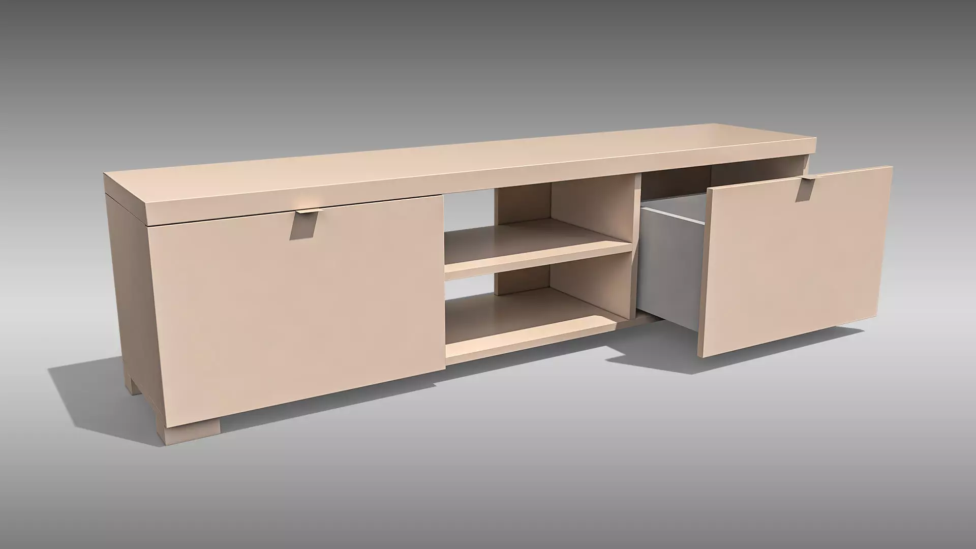 Detailed 3D model of a TV Stand, modeled and rendered in Cinema 4D. The model was created using approximate real world dimensions.