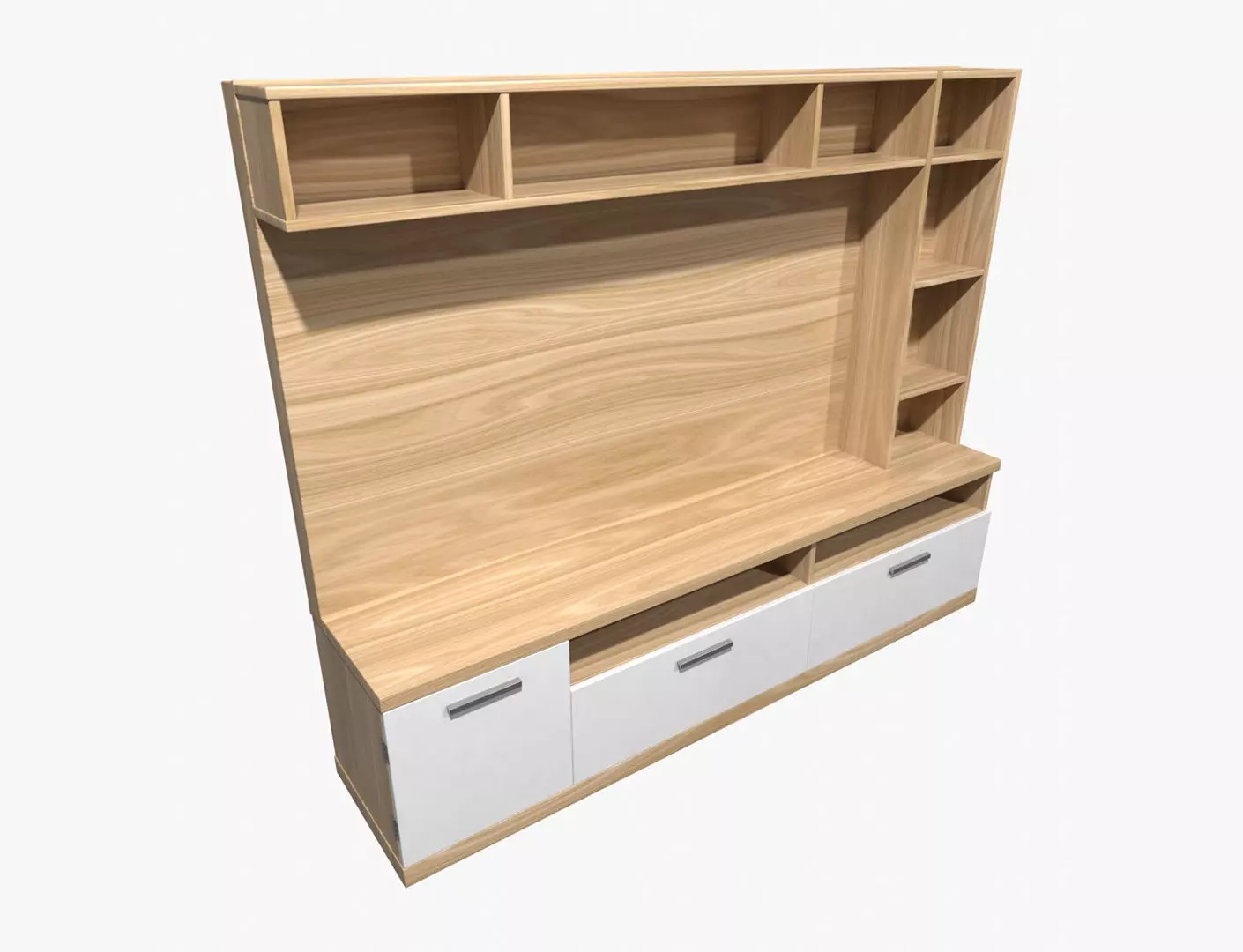 This is a high quality realistic TV Stand model. The model comes with high detailed textures (4096 x 4096).The model was modeled in real-world scale with ideal proportions. Dimensions of the model: 170cm (Height) x 211cm (Width) x 46cm (Depth).The base model was made in Maya, textured in Substance Painter and Photoshop, final images rendered in Blender Cycles.