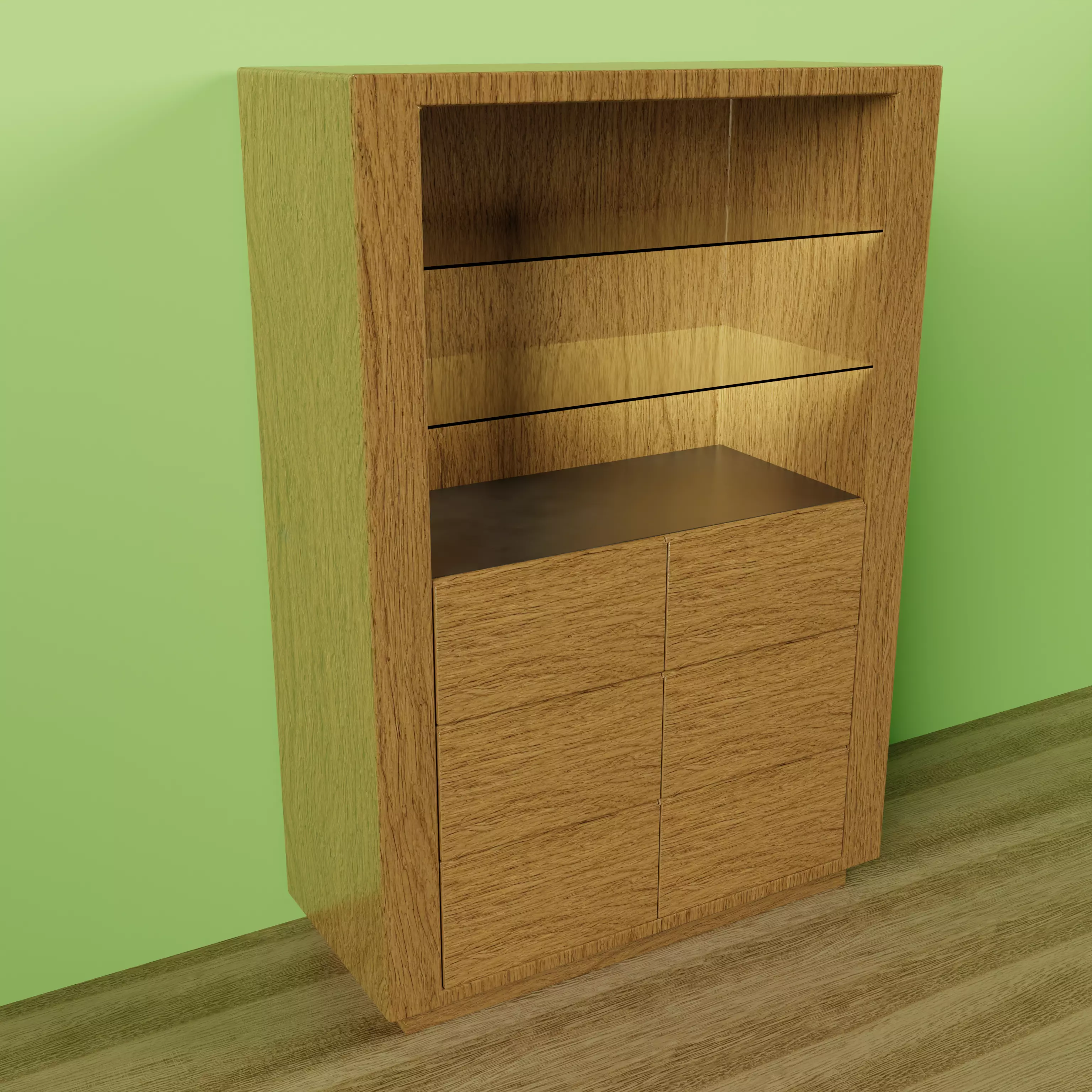 The model has material settings that define how surfaces look (color, shine, transparency, etc.).