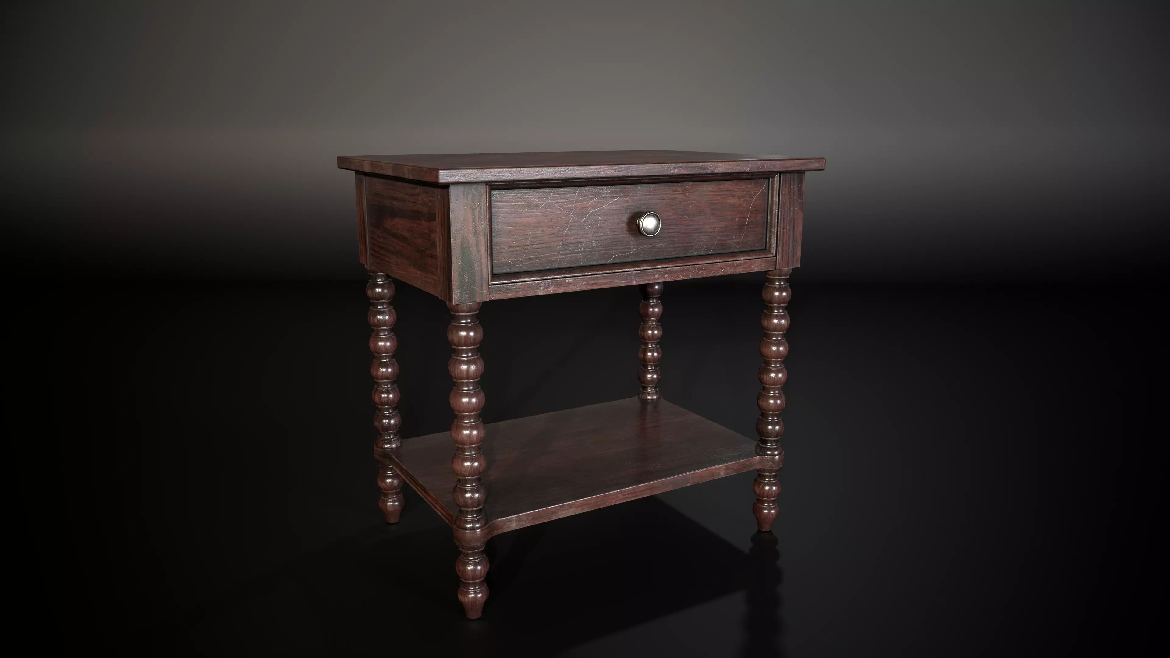 This** classic wooden nightstand** features turned legs and a functional drawer, making it ideal for bedrooms, living rooms, or game environments seeking a traditional charm. With a worn wood finish and detailed hardware, this model offers authentic realism for VR, AR, and next-gen games.