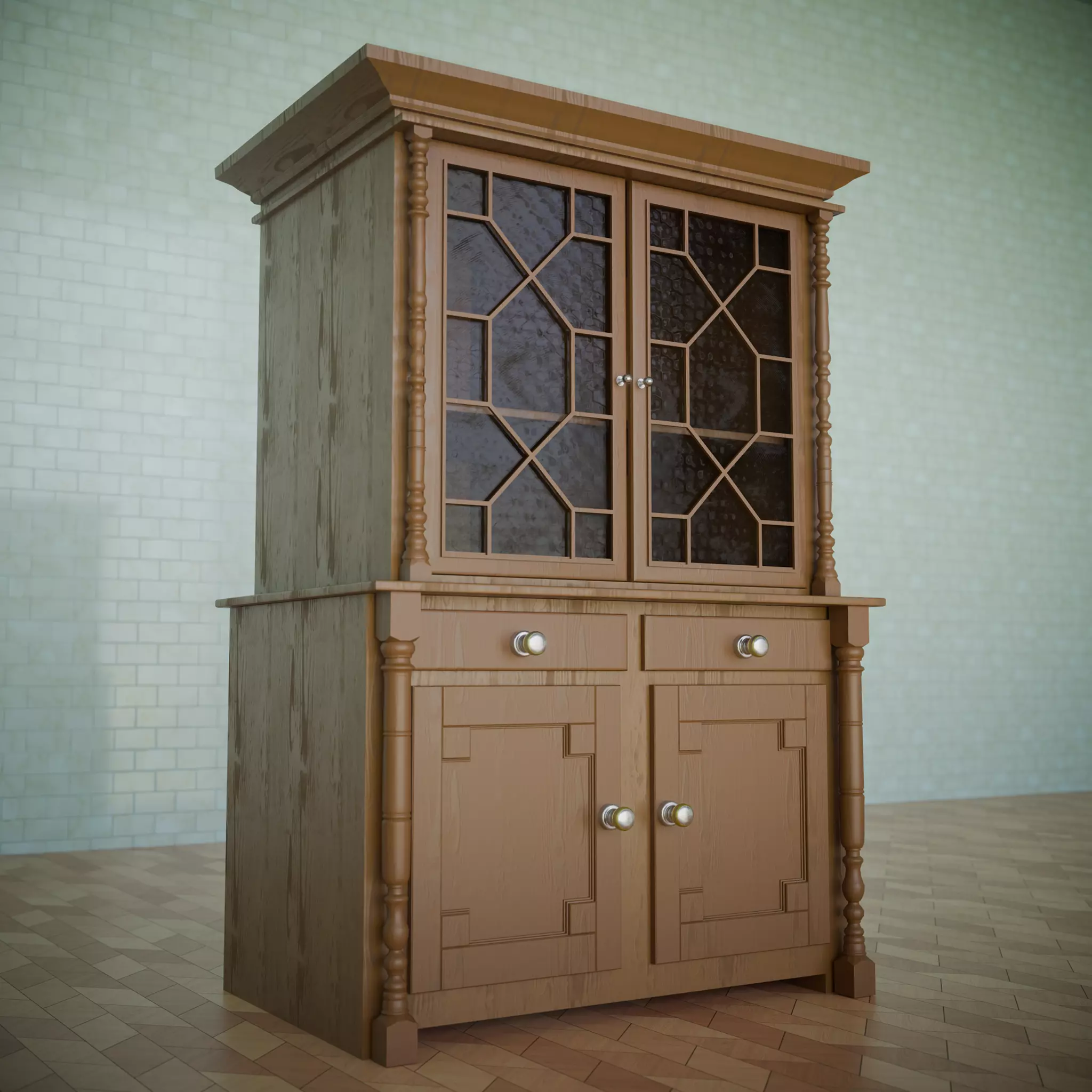 Vintage Wooden Kitchen Cabinet With Glass Doors PBR Low-poly 3D model