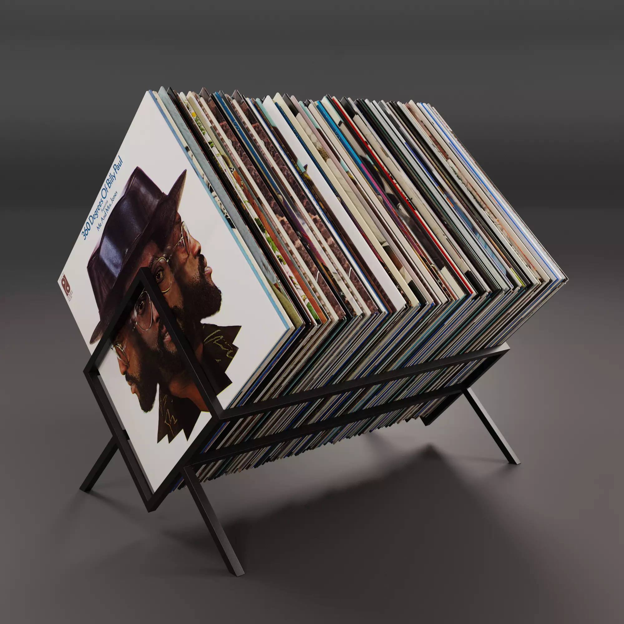 Realistic 3D model of a vinyl LP storages with hundreds of vinyls. The model is suitable for any visual production - broadcast, advertising, design visualization, etc