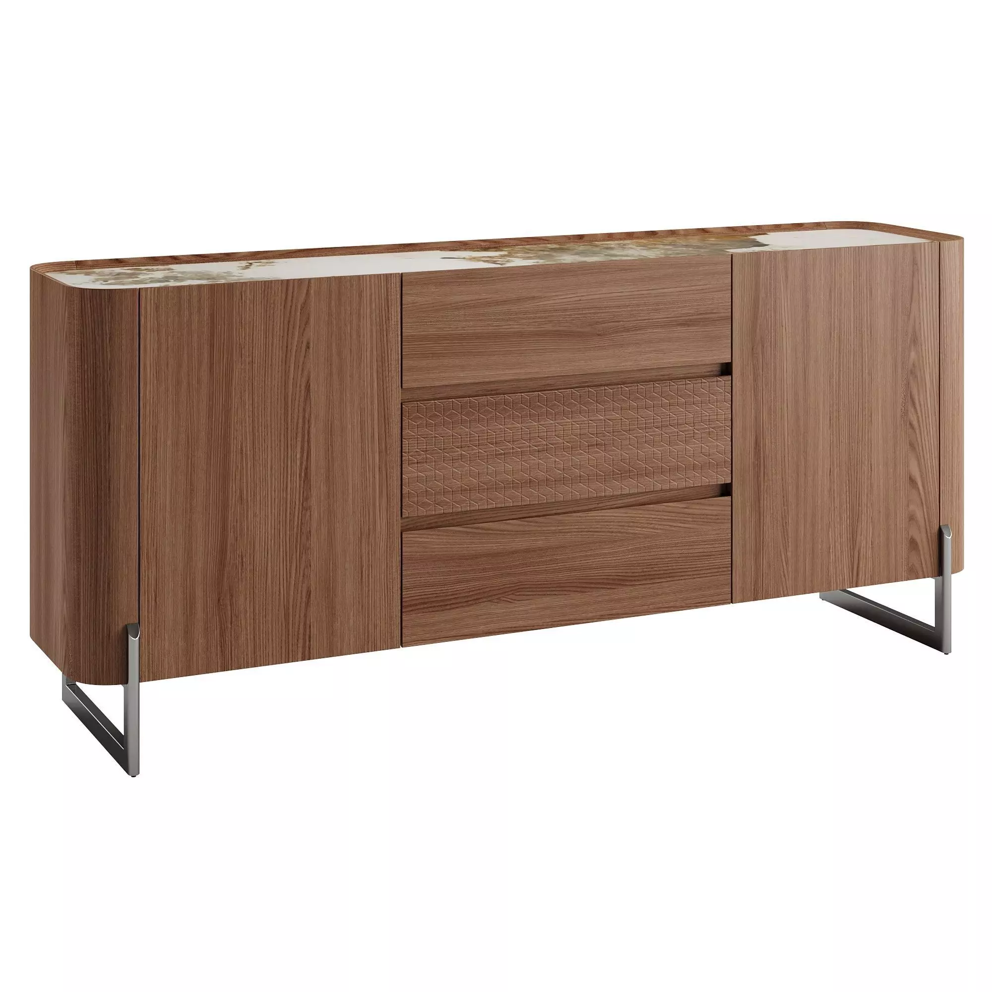 Walnut and dark metallized steel sideboard 3D model