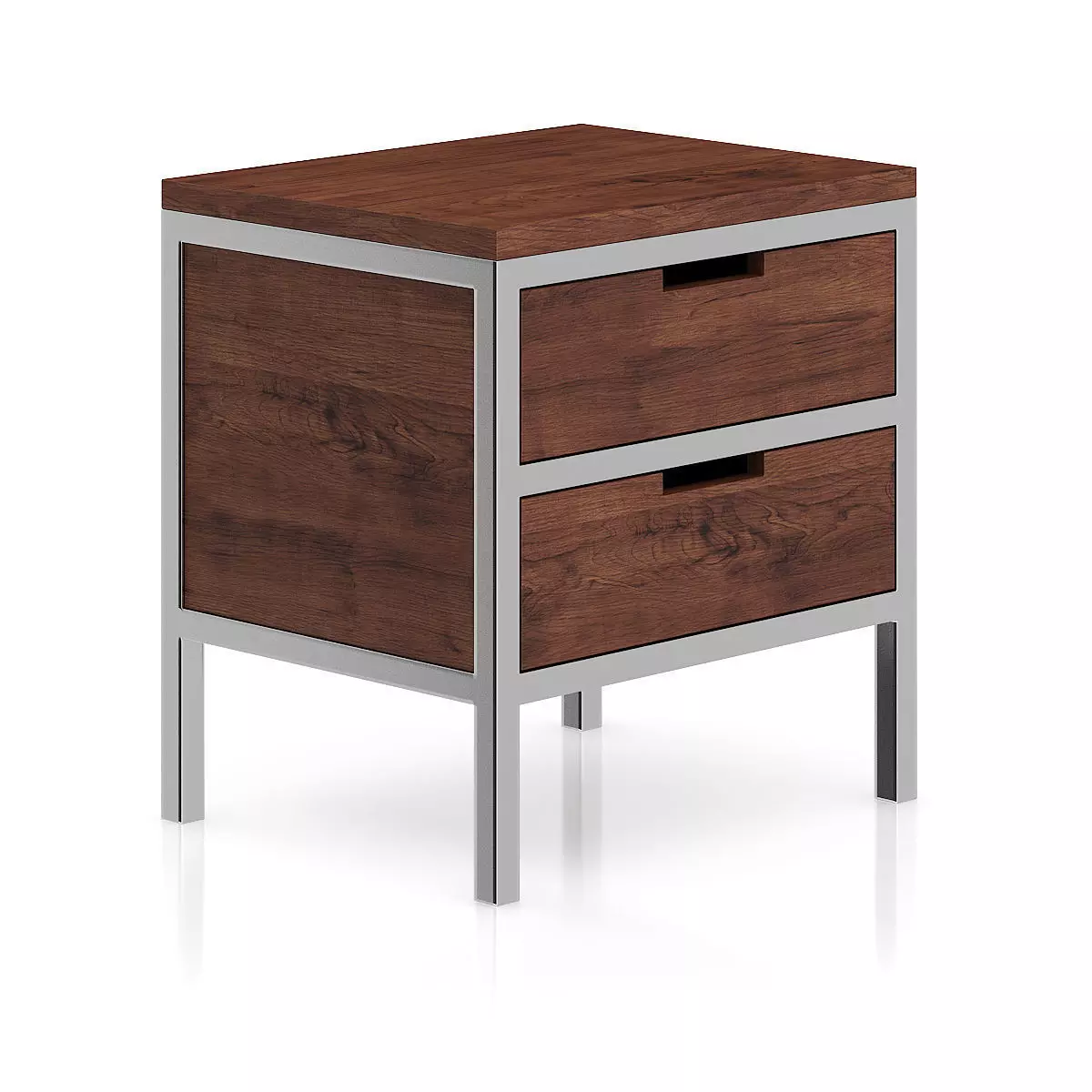 3D model of wooden bedside cabinet with metal frame and two drawers. Compatible with 3ds max 2010 or higher and many others.