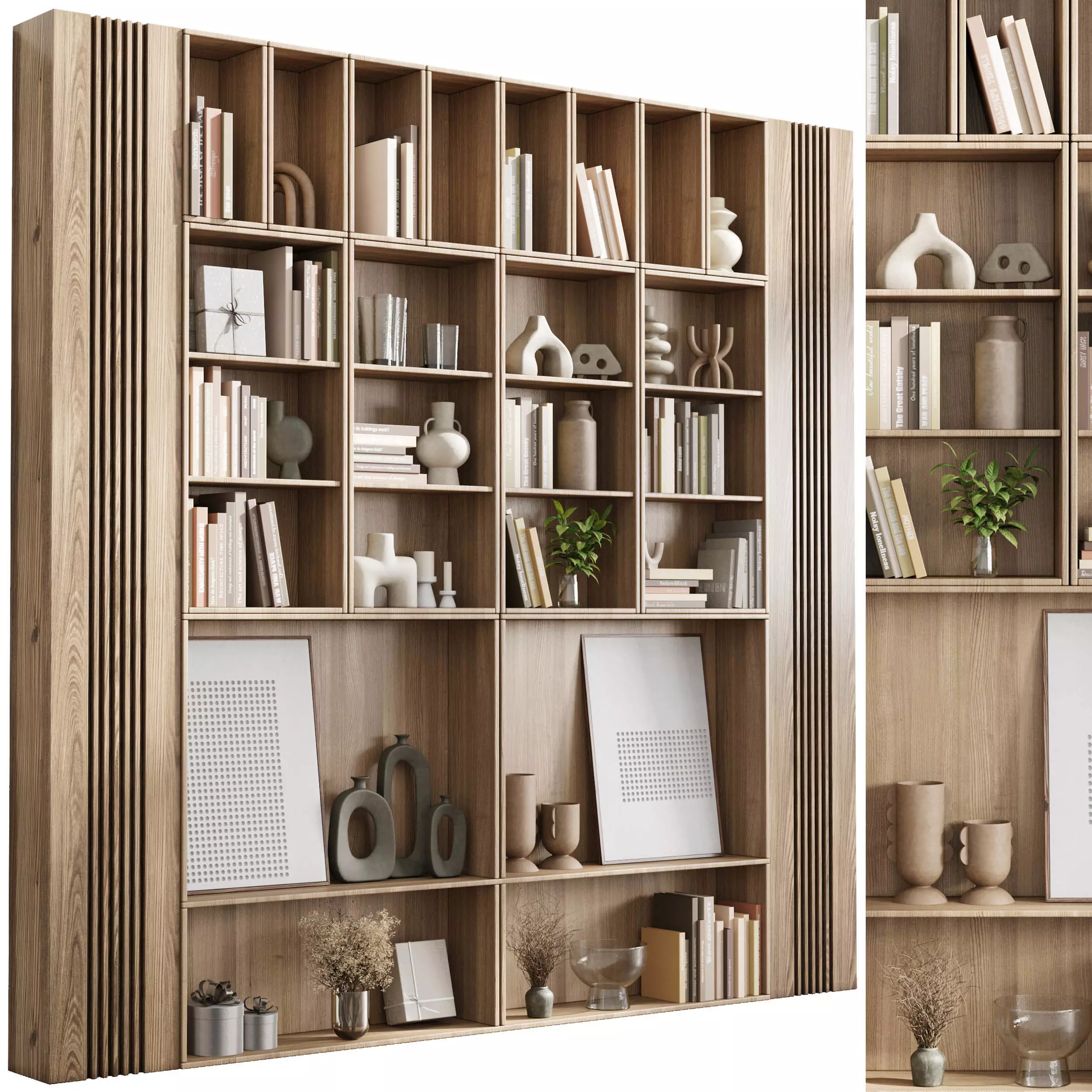 wooden Shelves Decorative With Plants and Book - Wooden Rack 14