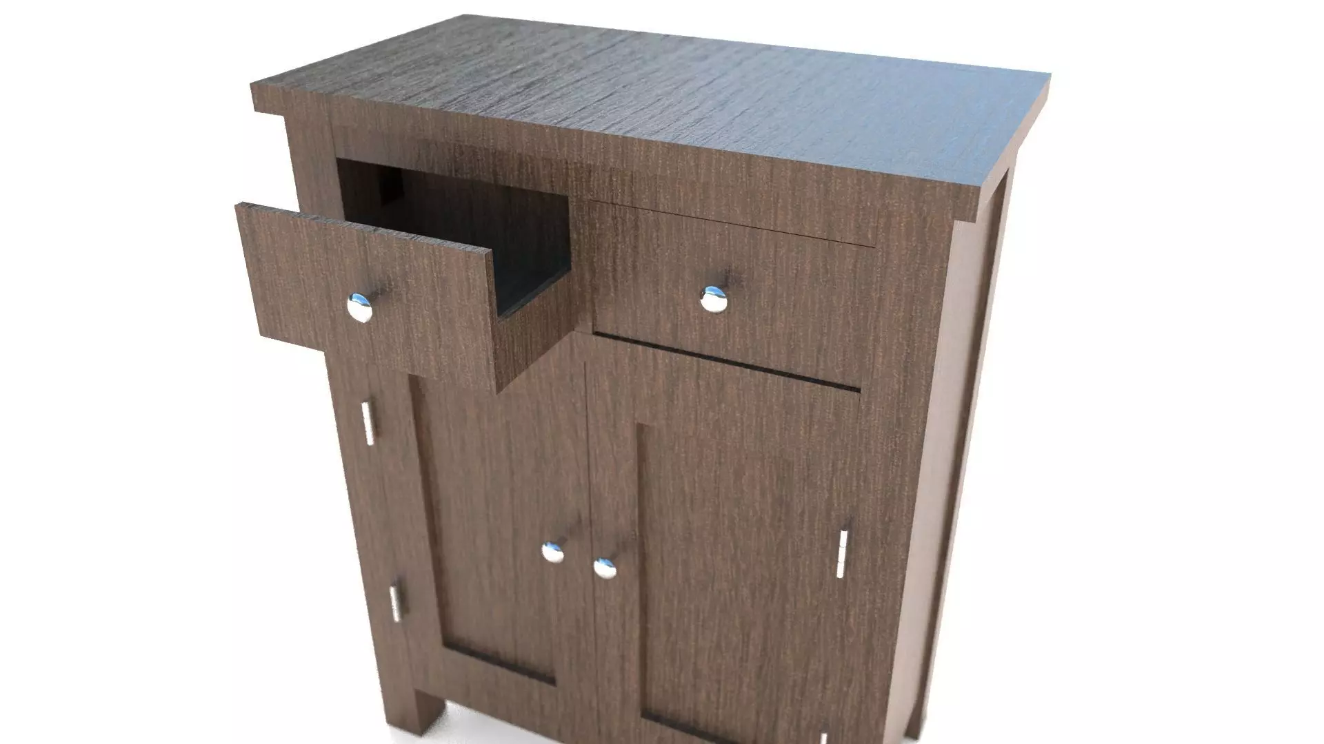 A set of cupboards and drawers or wooden sideboard unit, PBR textured and suitable for games at: 1410 polygons.
