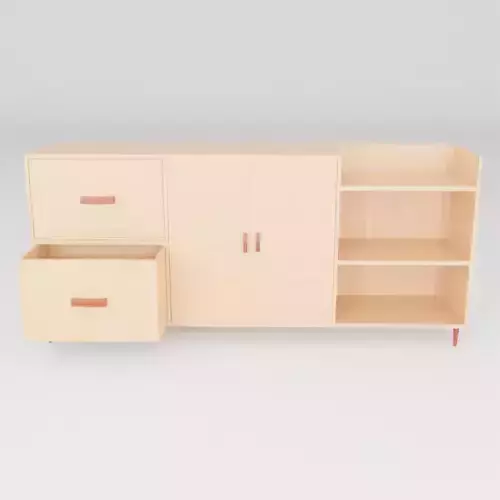 Tv stand 3d model modern design. Wooden table with image texture and non-overlapping uvmap. Can be used for adding some variation in your scene.