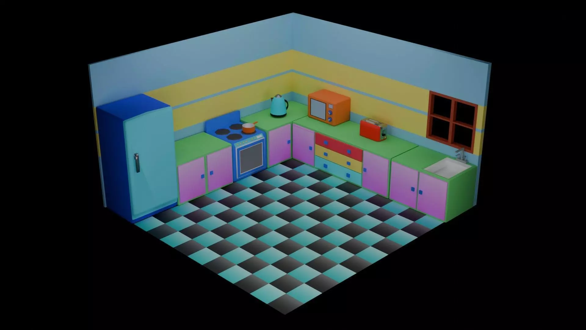 Cartoon style toy kitchen 3D model