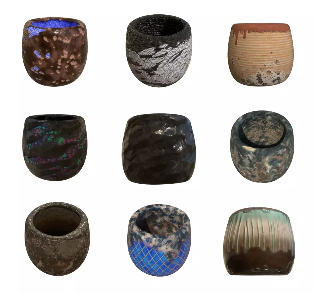 You will get 9 different materials for a cup. The original style will give a final touch to your interior scenes or to your digital shooting set. Low poly model available in several formats. Blender file with materials is included. Textures: 4k 4096x4096 png. PBR: base, height, metallic, normal, normal open gl, roughness map. Non overlapping uvs. Clean geometry, ready to render.