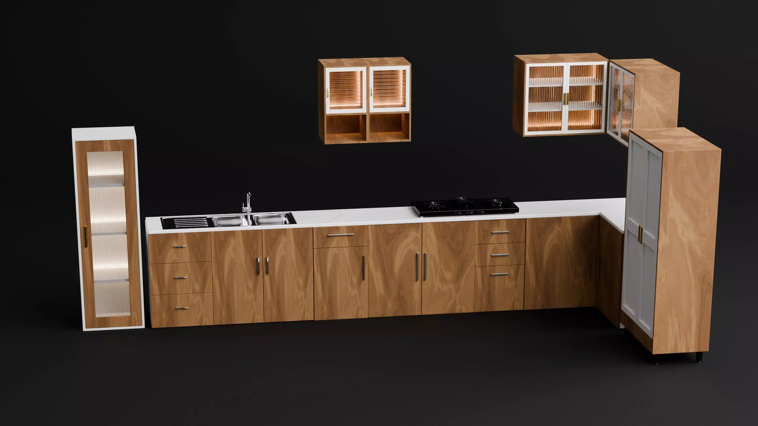 A high-quality, modular kitchen cabinet system designed for realistic interior scenes, architectural visualization, and game environments. This pack includes a complete set of modern wooden cabinets, drawers, countertops, and essential kitchen elements, allowing you to quickly build customizable kitchen layouts.