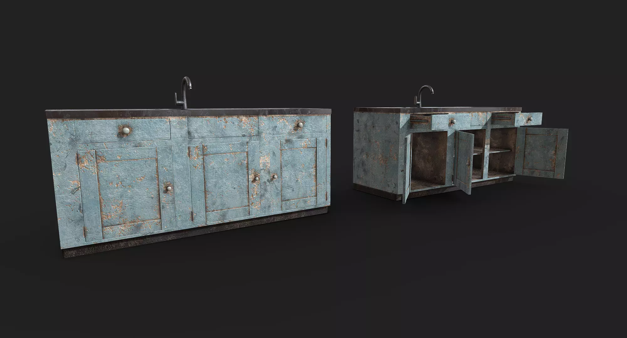 Old Painted Wood Kitchen Cabinets Low-poly 3D model