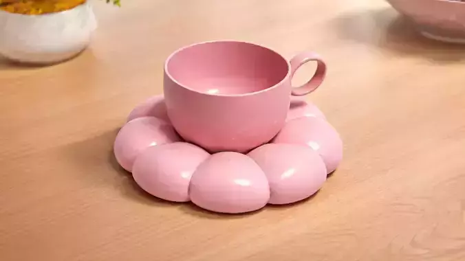 This is a stylized decorative cup 3D model featuring a soft, sculptural design inspired by organic flower forms. The cup sits on a rounded, petal-like base, creating a playful yet elegant aesthetic suitable for modern and artistic environments.