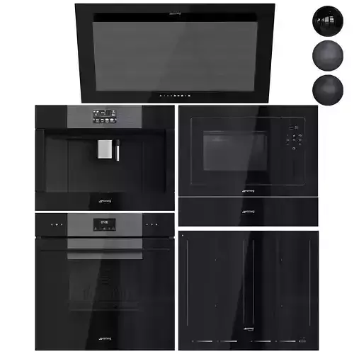Smeg Linea built-in kitchen appliance set in 3 colors: glossy black, matte black, Neptune grey