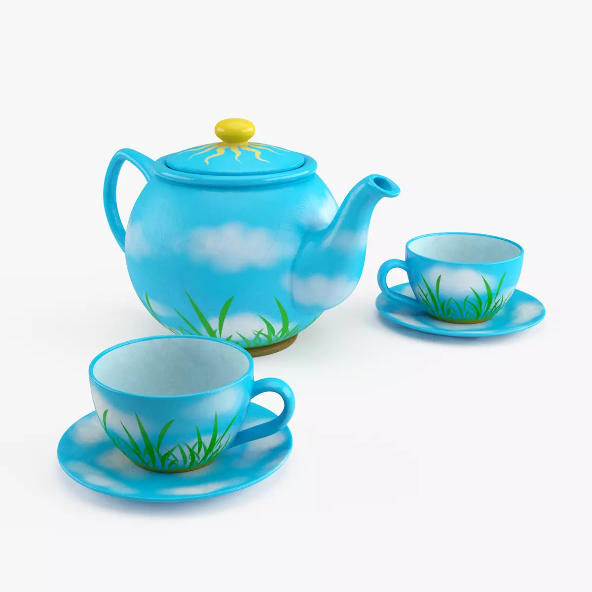 || USAGE ||This model is suitable for use in high-res film close-ups.This model is an accurate representation of a Teapot and Cups using a scale of 1unit = 1 centimeters.