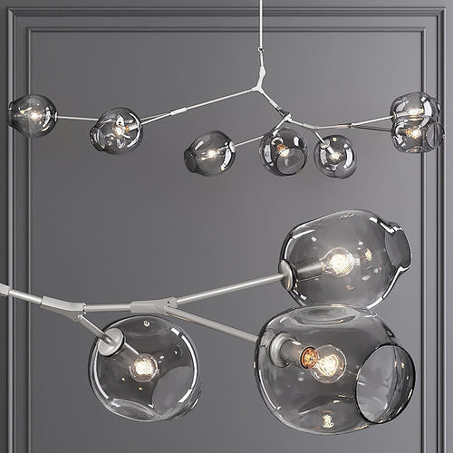 7-globe Branching Bubble Satin Nickel and Gray Glass 3D model