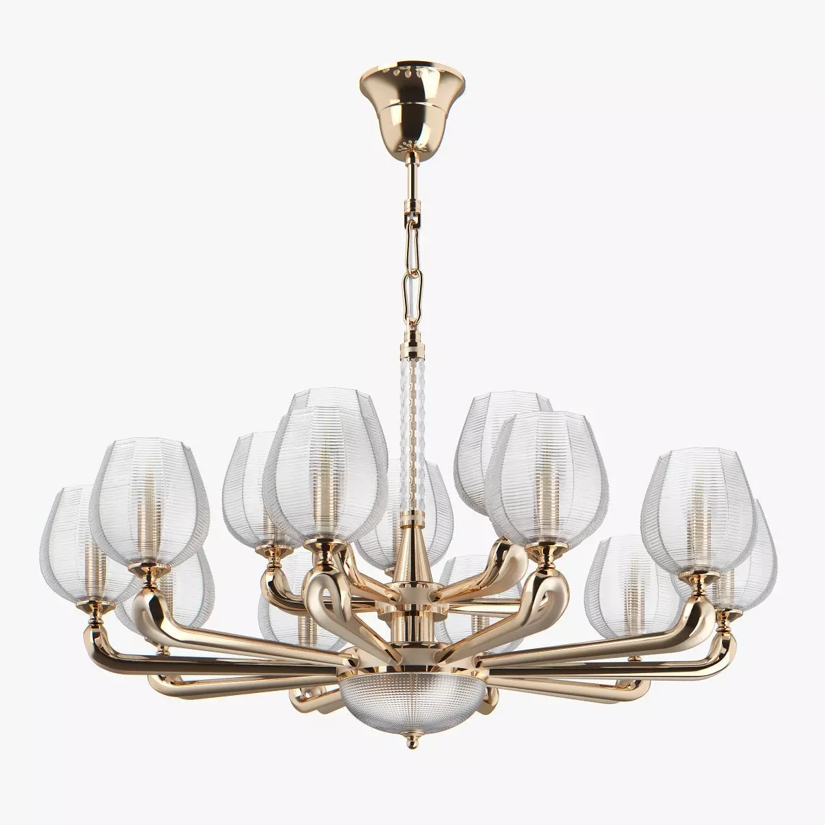 706152 Delta OsgonaChandelier(MDXJ69050 / 15)Height min-max (cm): 87-207; Width (cm): 102; Weight (kg): 25; Number of lamps: 15xE14; Power max (W): 40; Color: Gold;Polys: 266,660Verts: 263,041