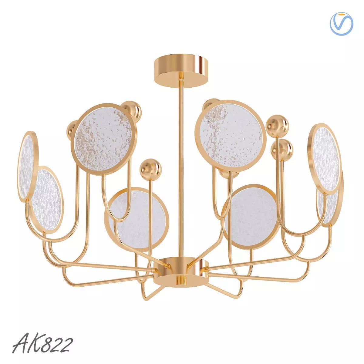 AK822 gold chandelier with circular mirrors 3D model