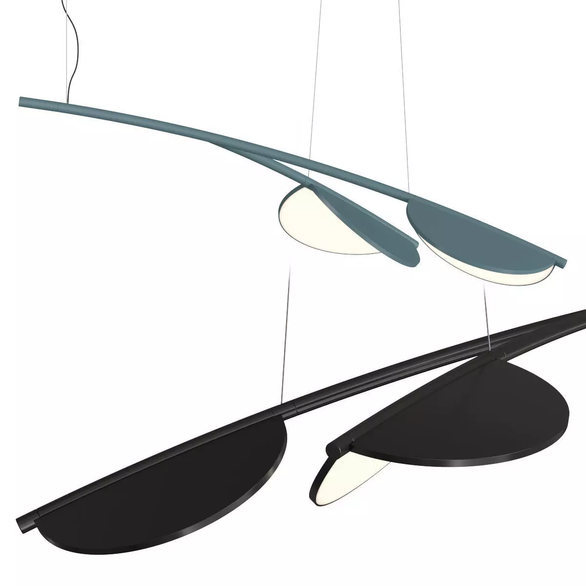 The Almendra Organic is more than just a light source; it's a dynamic piece of art that commands attention. The integrated LED strips along the petals provide a soft, continuous glow, making it an excellent choice for a variety of settings, such as over a dining table, a kitchen island, or in a modern living room. The model includes different finishes and colors, highlighting its versatility and high-end appeal.