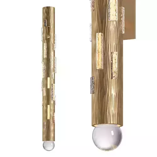 A wall lamp in a modern classic style. Made of textured, dark gold, hammer-finished brass, light refracts through crystal elements and a globe.