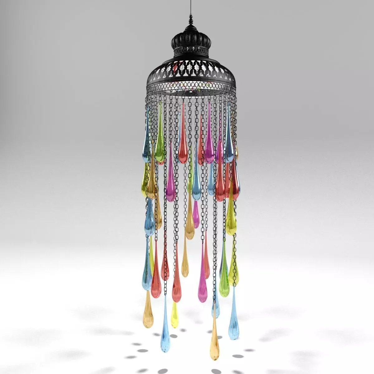 Decorative brass or wrought iron hook and chain for suspension.