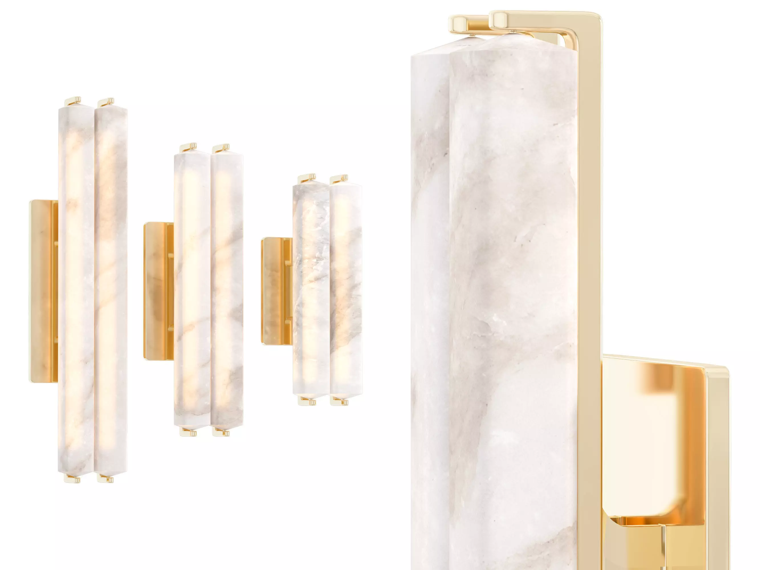 Capturing the spirit of 1960s Italian minimalism, Audubon appears to cascade from above with ten prisms of alabaster on vertical brass drops. At once striking and restrained, the collection by Joseph Jeup evokes the warmth of candlelight with elongated LEDs that shed beautiful light through the translucent stone.