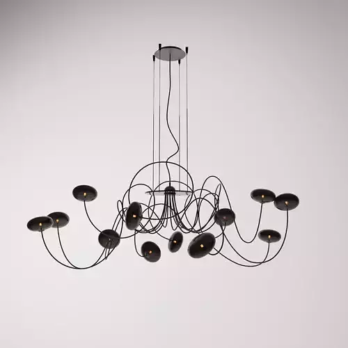 Product Introduction:High-quality modern artistic organic curve glass chandelier 3D model, based on the Bertjan Pot Drop Chandelier. Crafted with black metal curved frame and 12 smoked glass oval shades, the freely stretching lines like vines are highly sculptural. Light diffuses softly from within the glass shades, creating a dynamic and tense spatial atmosphere, suitable for soft matching and effect rendering in modern light luxury, art galleries, large flats and other scenes.Product Dimensions: Diameter 200cm × Height 120cm, cord length adjustable up to 150cm.Model Description:This model is created and rendered with 3Dmax and Corona, including texture maps and lighting. Re-linking textures is required when using other formats. Welcome to visit my homepage. Please contact me if you have any questions, thank you.