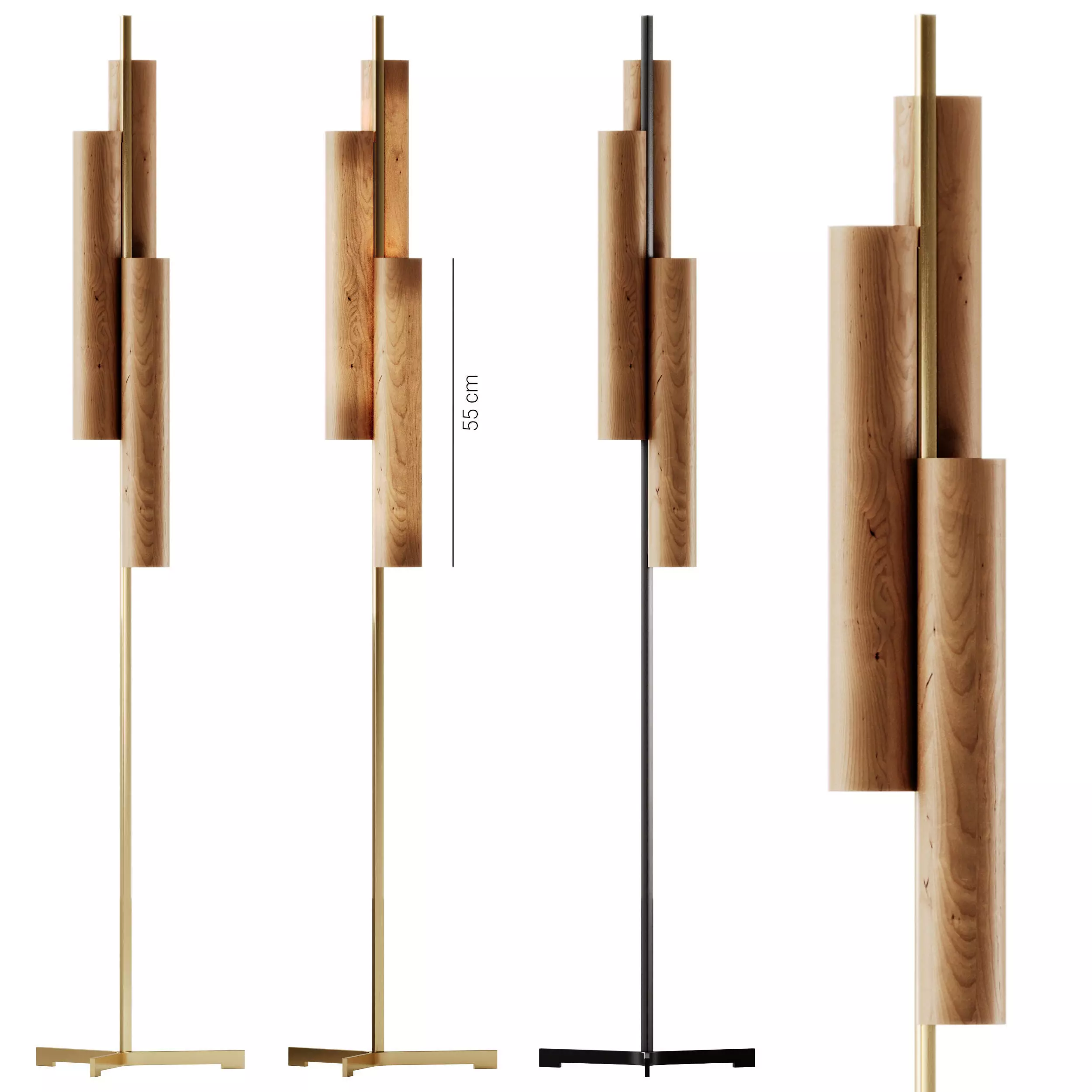 Lzf Black Note Triplet Handmade wood veneer and metal floor lamp: