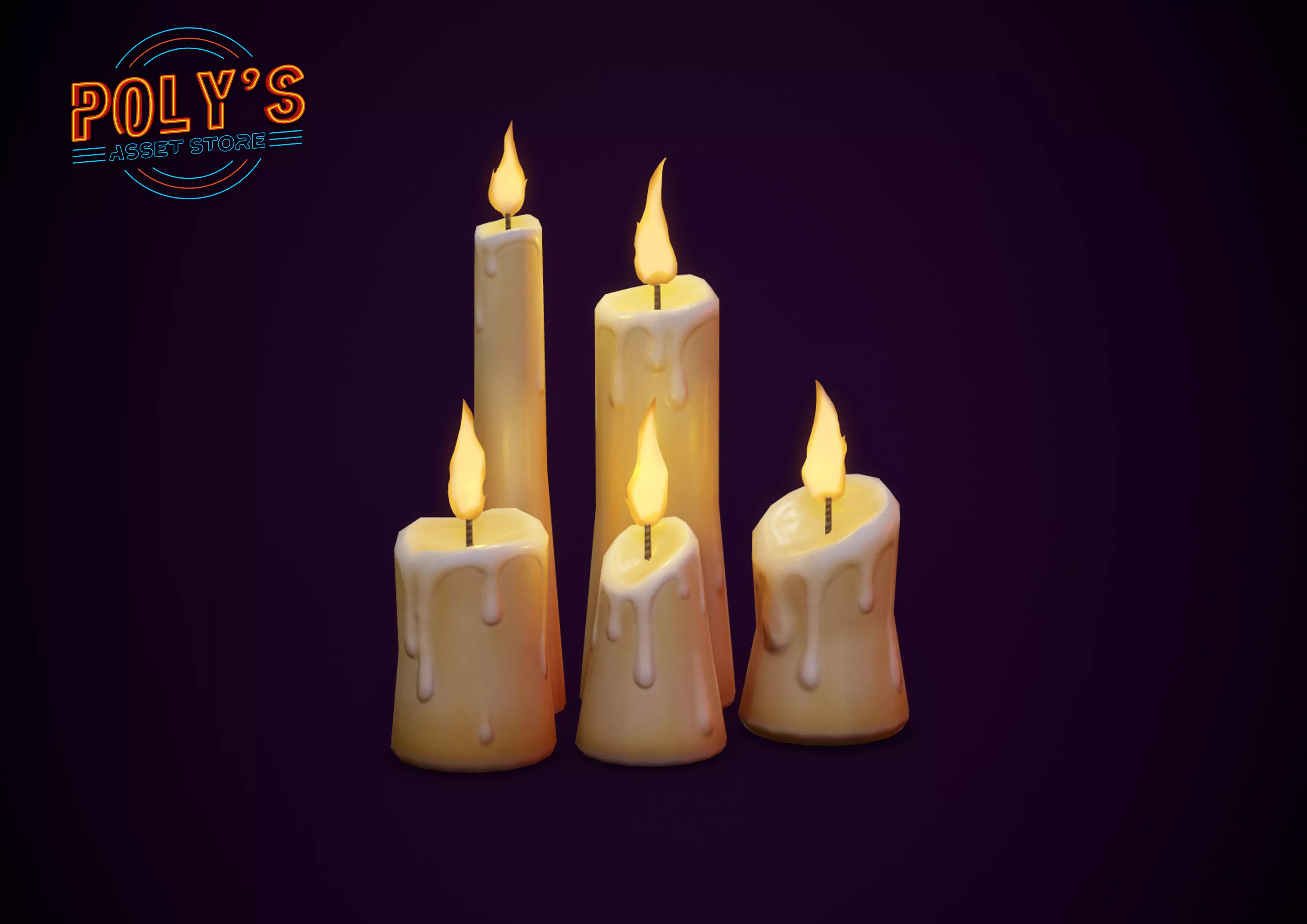 • This is a Low Poly Stylized pack of 5 candles. Models with and without the flame included.