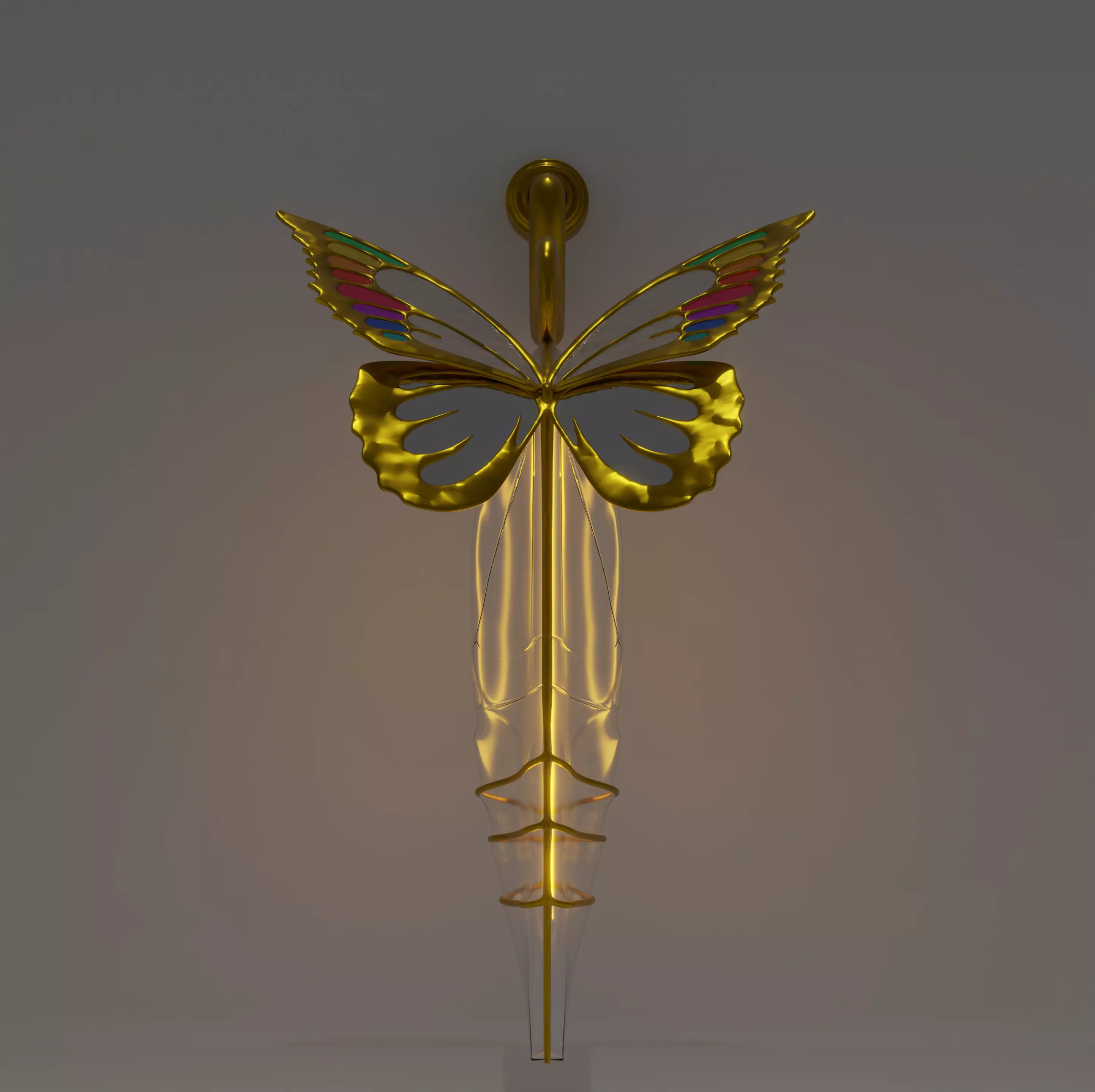 This artistic chrysalis-shaped lamp captures the beauty of metamorphosis and the elegance of a golden butterfly. Designed to symbolize transformation and inner light, it brings a modern yet poetic touch to your 3D projects.