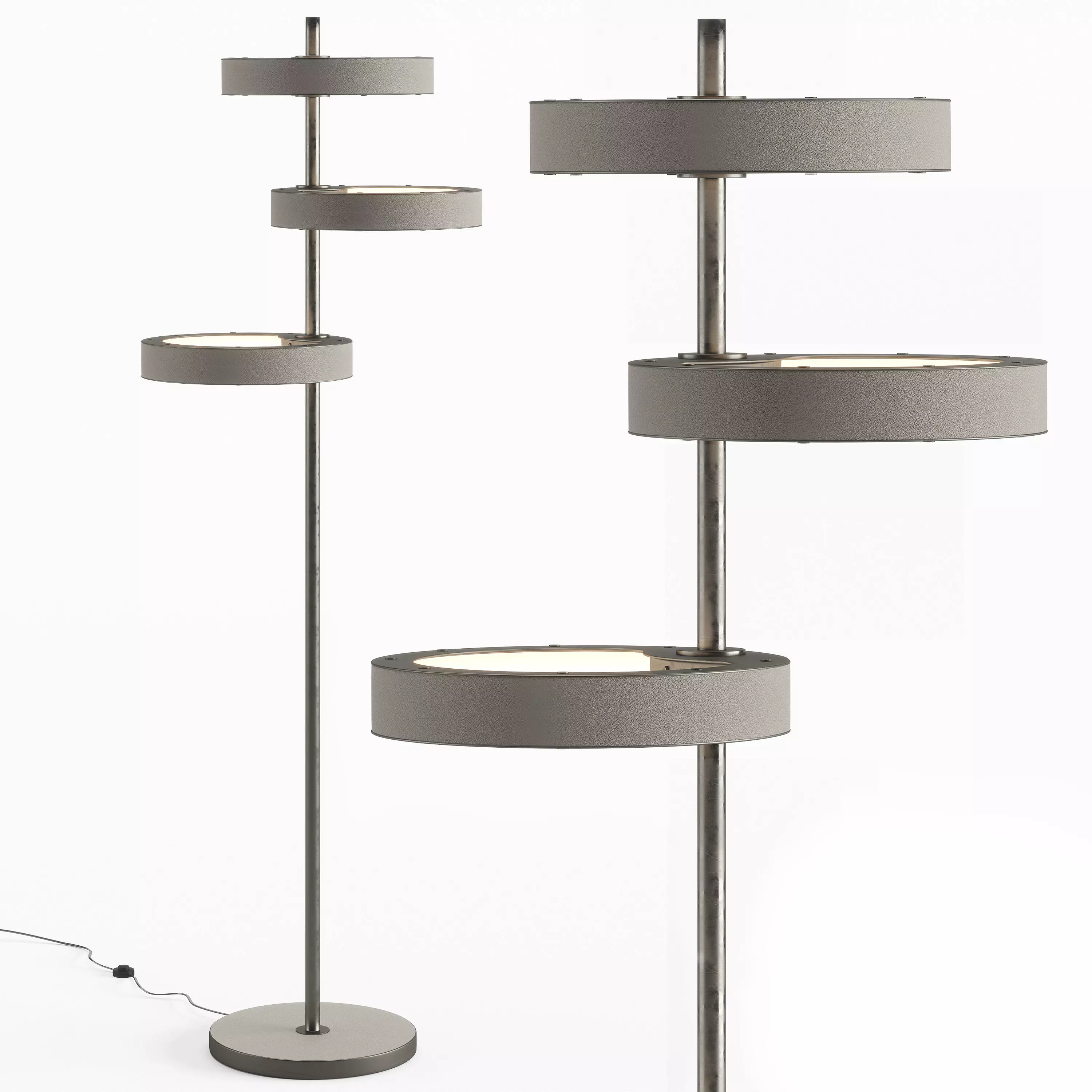 The model has material settings that define how surfaces look (color, shine, transparency, etc.).