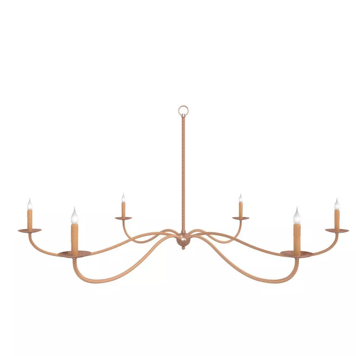 9000-0757Saxon ChandelierThe Saxon Rattan Chandelier is a monumental rattan chandelier that joins the black and silver versions of this long-standing popular design. Its shape is a nod to a bygone era, but its slender lines that arc gracefully and the natural rattan make its profile feel modern. We also offer this fixture in a silver Granello finish and a Zanzibar black finish.