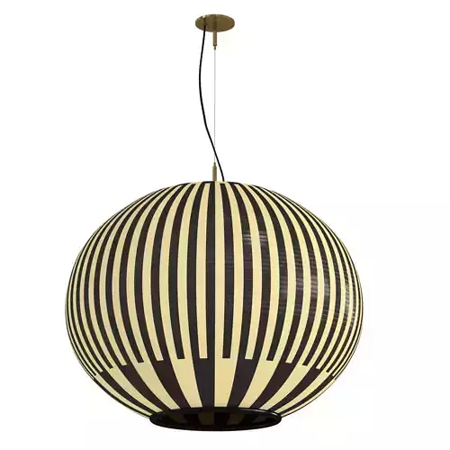 Custom made pendant rattan lampbeige brown vertical stripes sphere shape black twisted rope cord brass metal base