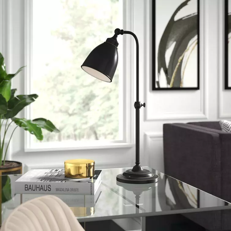• Illuminate your desktop in style with this task lamp. Crafted of metal in a fashionable finish, this desk lamp strikes a tubular post silhouette on a molded round pedestal base.