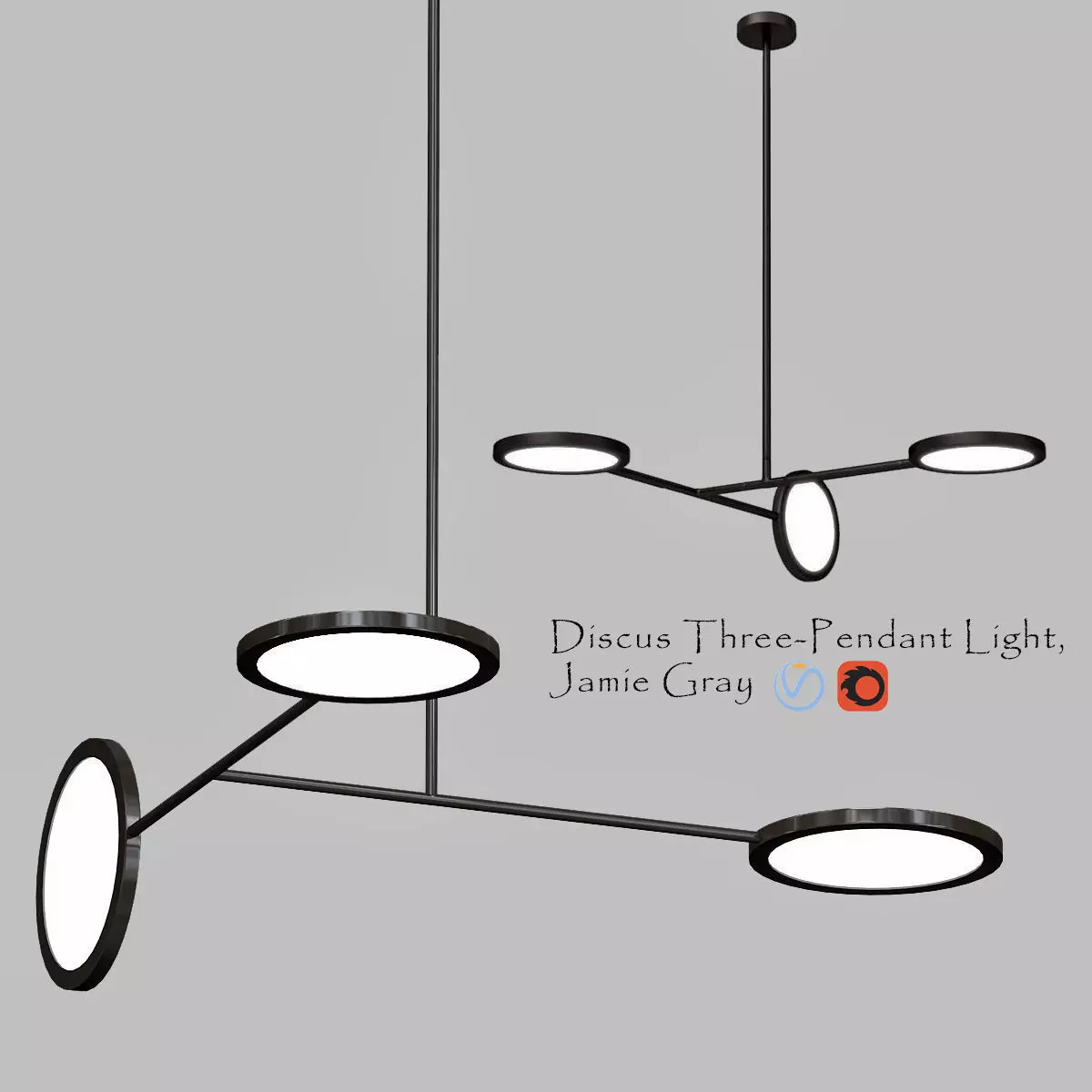 Name: Discus_Three_Pendant_Light,_Jamie_GrayVersion: 2013Preview: NoUnits: MillimetersDimension: 383.83 x 404.45 x 625.51Polys: 16 208XForm: NoBox Trick: NoModel Parts: 10Render: V-RayFormats: 3Ds Max 2013, OBJ, FBX, 3DS