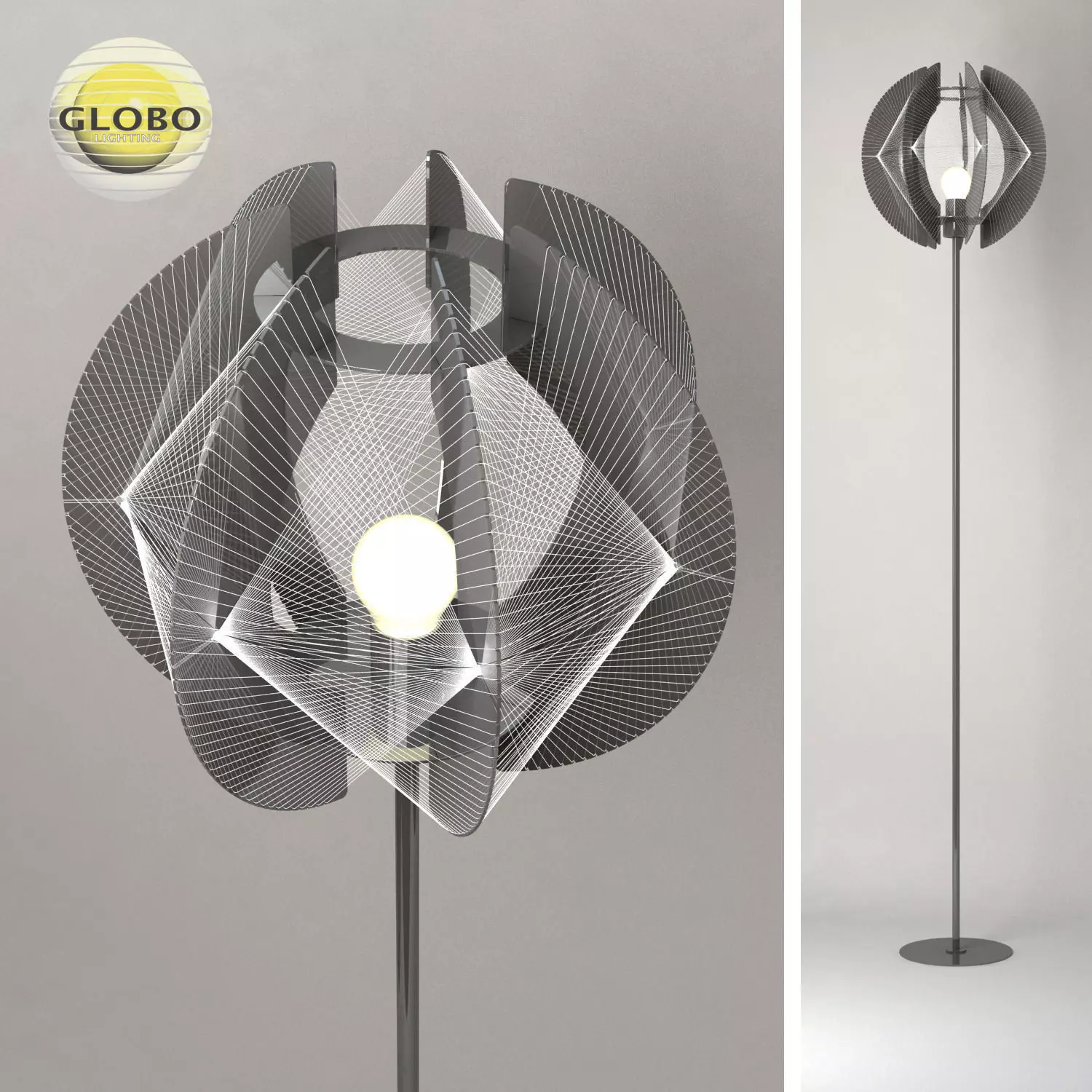 Modern floor lamp from the collection "Pollux" Production - Globo lightning, AustriaArticle - pollux 15827SMaterial - chrome, silk thread