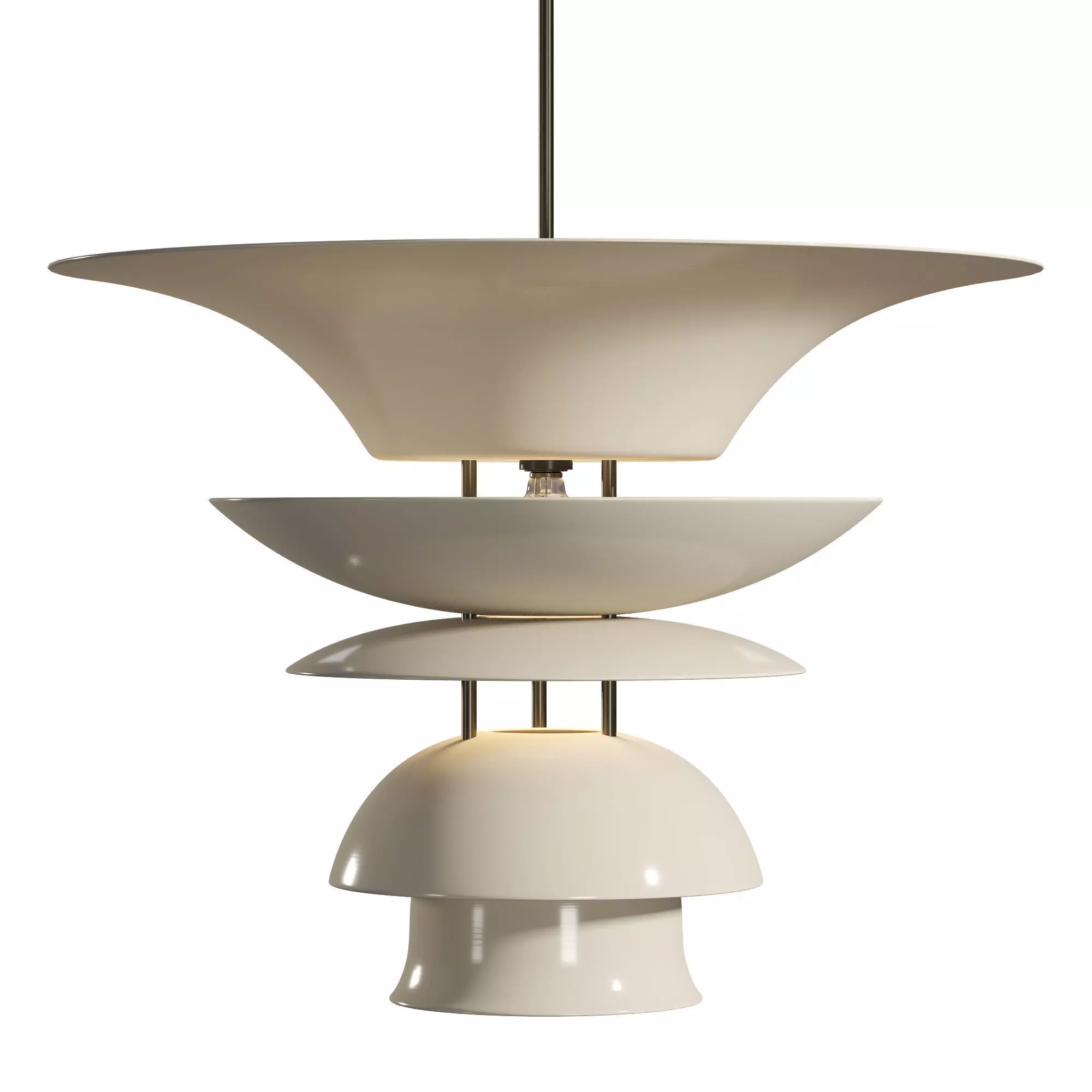 FOFI is a mid-century modernist style pendant light in beige metal shades and antique bronze detailsHigh detailed/Subdivision-ready 3D modelMaterials: MetalDimensions:Width: 62 centimetersHeight: 110 centimeters