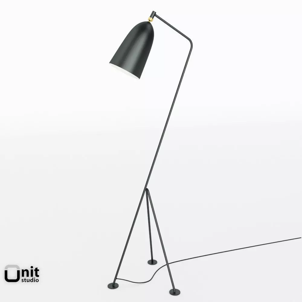 Grshoppa lamp was first produced in 1947. The tubular steel tripod stand is tilted backward and the elongated aluminium conical shade is ball-jointed onto the arm; so the light can be directional, yet the glare is minimal. Designed by Greta Grossman and produced by Gubi.