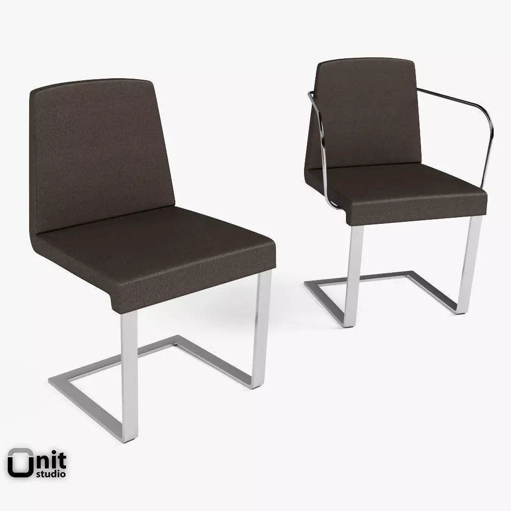 Upholstered chair. Frame: chromium-plated steel. Padding: cold-expanded foam. Covering: fabric or leather. Also available with armrestsBy Bonaldo, design Mauro Lipparini