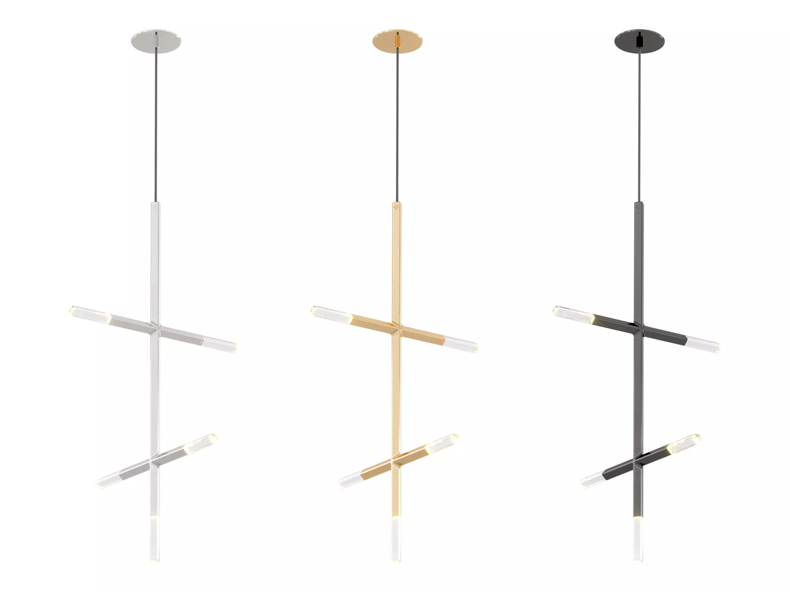 Jax translates the traditional crystal chandelier for a timeless future-past. Featuring machined aluminum and hand-polished cut crystal. A subtle chamfer crosses both materials, nodding to the archetypal cuts of chandelier prisms. Jax both honors and supplants the historic role of crystal in lighting, elevating it from an accessory to the proximal source of light.