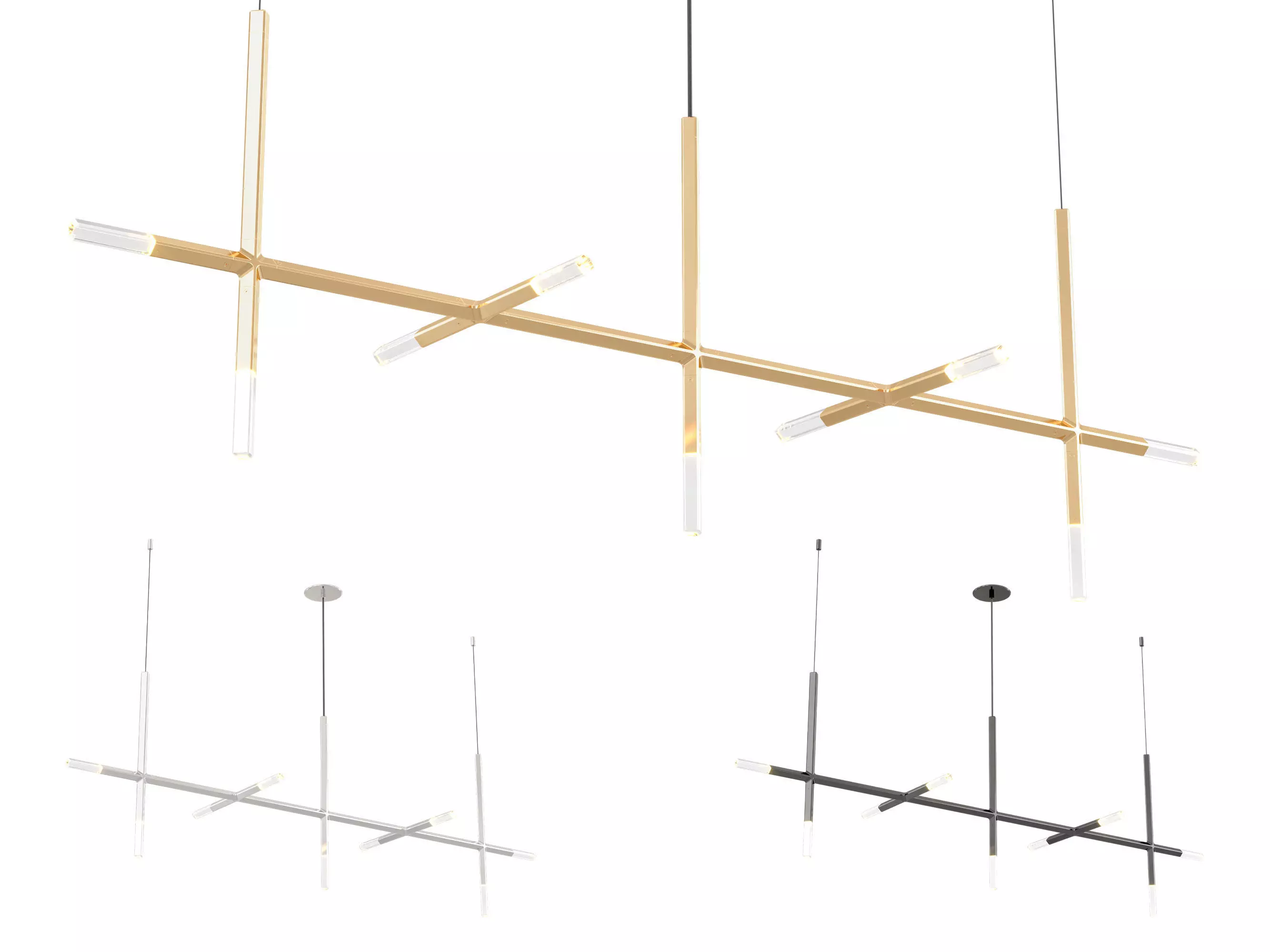 Jax translates the traditional crystal chandelier for a timeless future-past. Featuring machined aluminum and hand-polished cut crystal. A subtle chamfer crosses both materials, nodding to the archetypal cuts of chandelier prisms. Jax both honors and supplants the historic role of crystal in lighting, elevating it from an accessory to the proximal source of light.