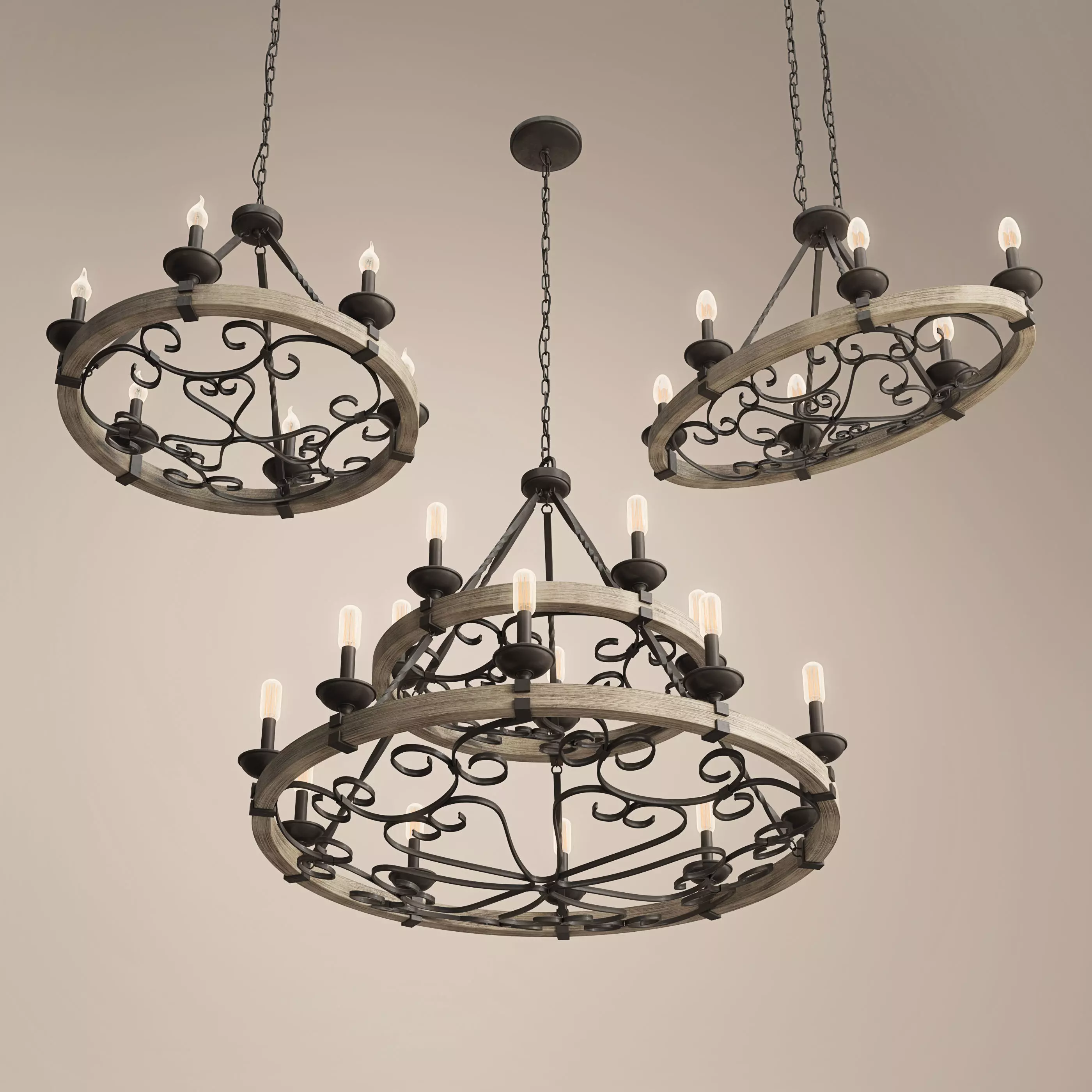 Lights Collection includes 3 part, Taulbee timeless design with Weathered Zinc detailing coupled with Weathered Grey Wood veneer accents.