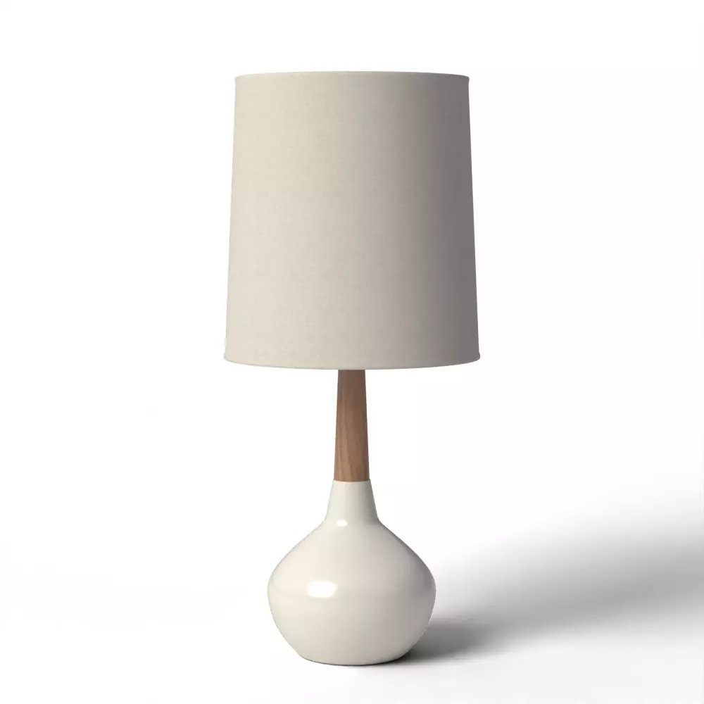 Materials: The base is crafted from glossy white ceramic, topped with a wood-finished neck that adds a touch of warmth and natural texture.