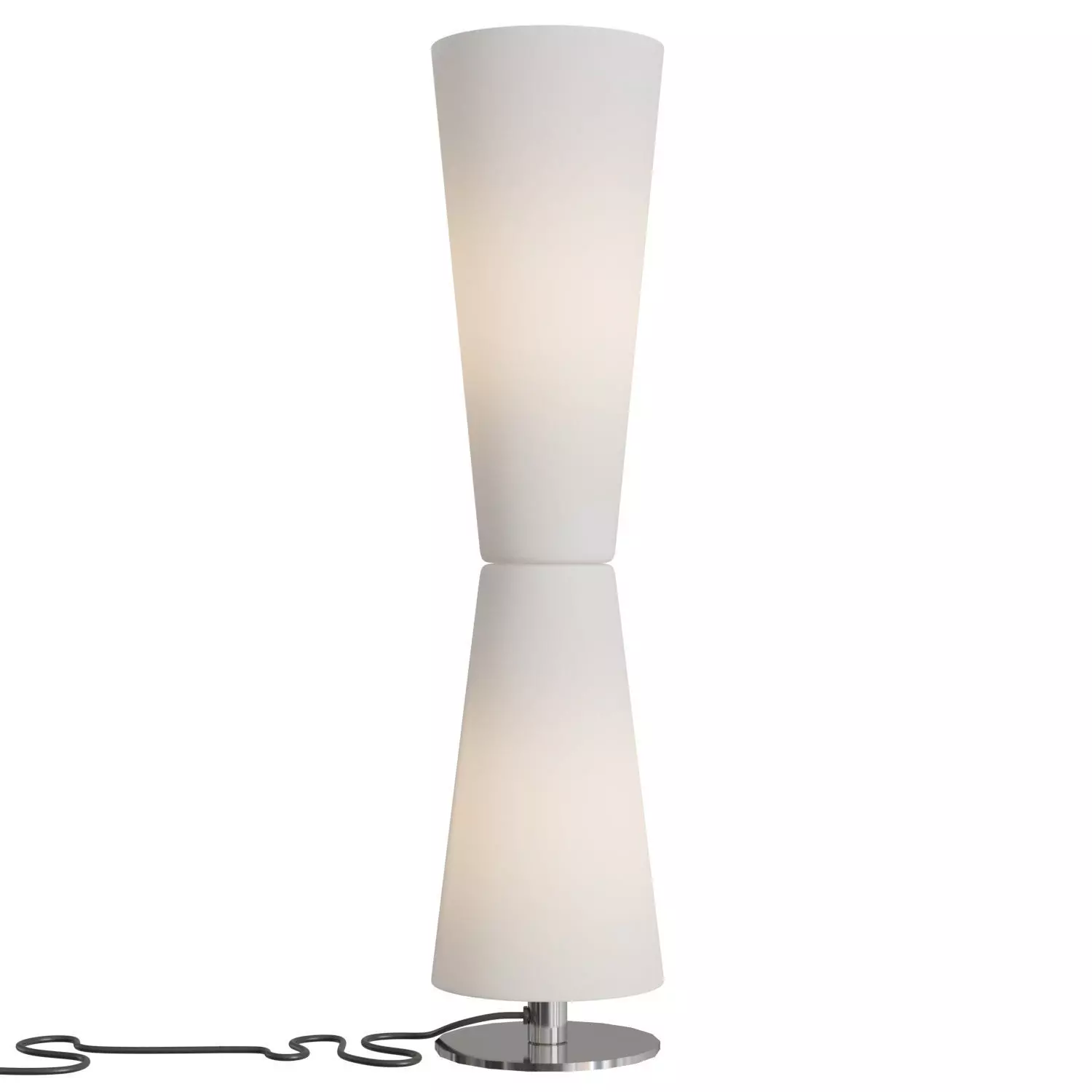 A theoretical lamp, endowed with just the right measure of geometric abstraction required by object to maintain their courtliness. The geometries chosen by Stefano Casciani are primitive, ancient ones occasionally filtered perhaps, through cubist suggestion. The colour (even white here is colour) constitutes a necessary and consequent datum: marking the volume, emphasizing the profile. The simplification of form in reality protect a core which is complex form the manufacturing point of view (a double mould for blowing the glasses) and from that of the lighting engineering (with differentiated optics such as switches and the sensorial, grazing, dimmer).In the table version a slight gap lifts the glass off the top and projects a sharp, circular shadow: a detail not to be underrated.Lu-Lu can desired, be left completely off and hence textural, or on and thus dissolved, but also lit only in its upper half (the light resting on the heavy) or in its lower half (the heavy resting on the light).
