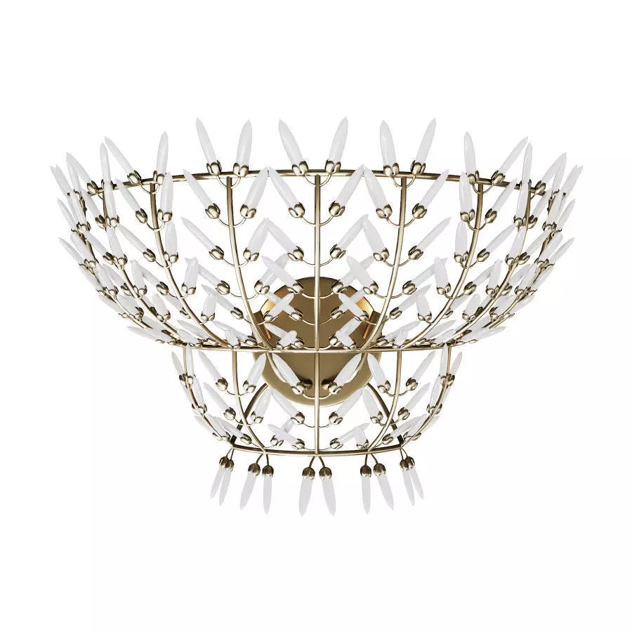 Undertaking the challenge of creating a clean-lined version of a vintage design, the Magnum Opus Wall Sconce features rows of glass leaves attached to metal stems that arc around the wall-plate. The glass leaves effervesce when light strikes them, creating a stunning sculptural fixture. The white glass beautifully contrasts the metal in a brass finish, bringing a heightened level of texture to the gold sconce while infusing a space with a lovely glow.The model was created in the 2018 version and saved in the earlier 2015.The OBJ format is also present.There are no third-party plugins, all elements are named by their names.For Corona render, it is recommended to install version no lower than 1.5, since the glossiness of materials is configured taking into account PBR,(SCENE IN MILLIMETERS)15.5h x 23.5w x 11.5"d