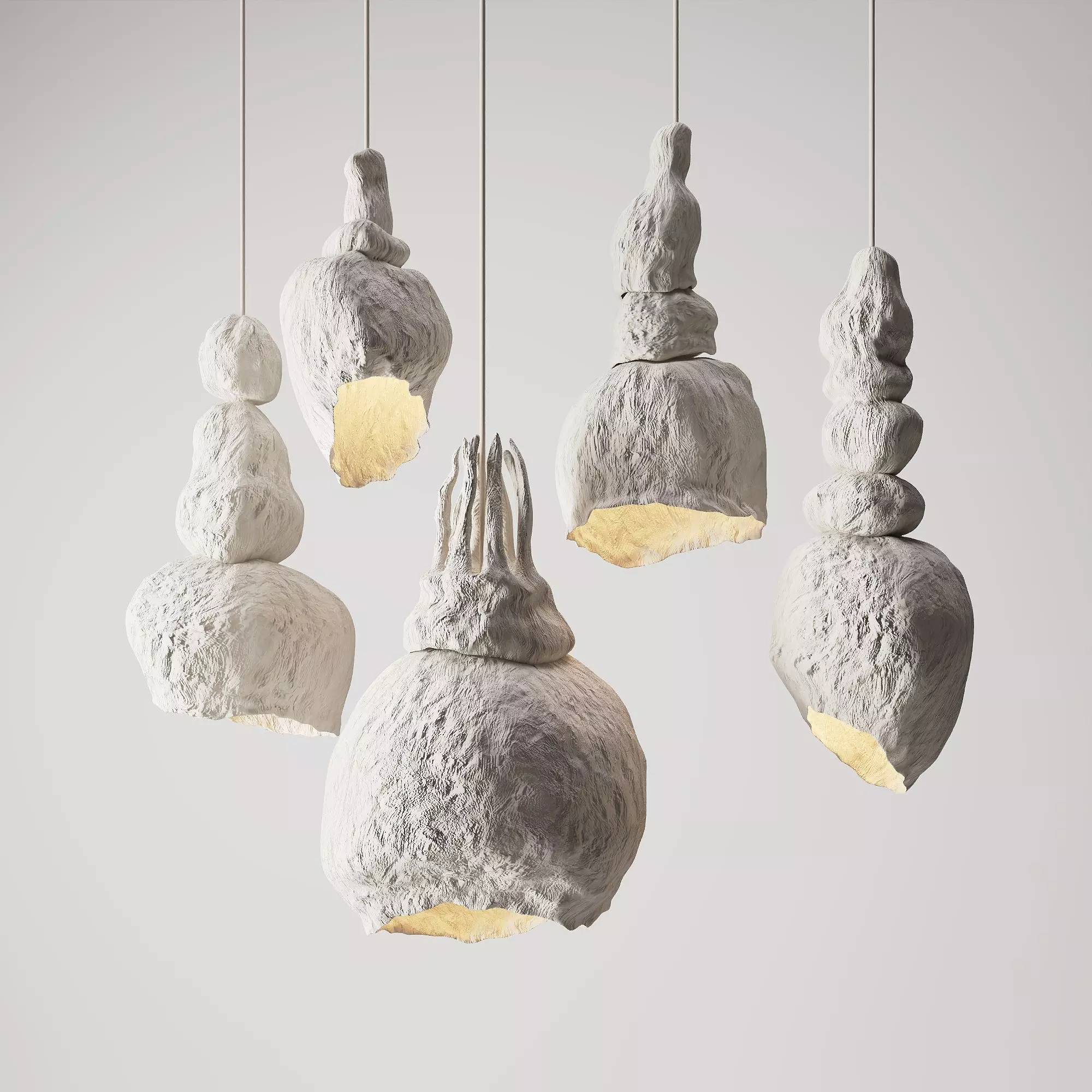 Product Introduction:High-quality modern artistic handcrafted stacked plaster pendant light 3D model, based on the Martin Huxford Handcrafted Stacked Plaster Art Pendant Light. Hand-sculpted by designer Martin Huxford, it features rough ceramic-like white plaster material, with irregular stacked shapes and internal gold lining creating a strong contrast. Light diffuses from the bottom gap, creating a sculptural artistic atmosphere, suitable for soft matching and effect rendering in art galleries, high-end residences, wabi-sabi spaces and other scenes.Product Dimensions: Large: Diameter 40cm × Height 60cm; Medium: Diameter 30cm × Height 45cm; Small: Diameter 25cm × Height 35cm, cord length adjustable up to 150cm.Model Description:This model is created and rendered with 3Dmax and Corona, including texture maps and lighting. Re-linking textures is required when using other formats. Welcome to visit my homepage. Please contact me if you have any questions, thank you.