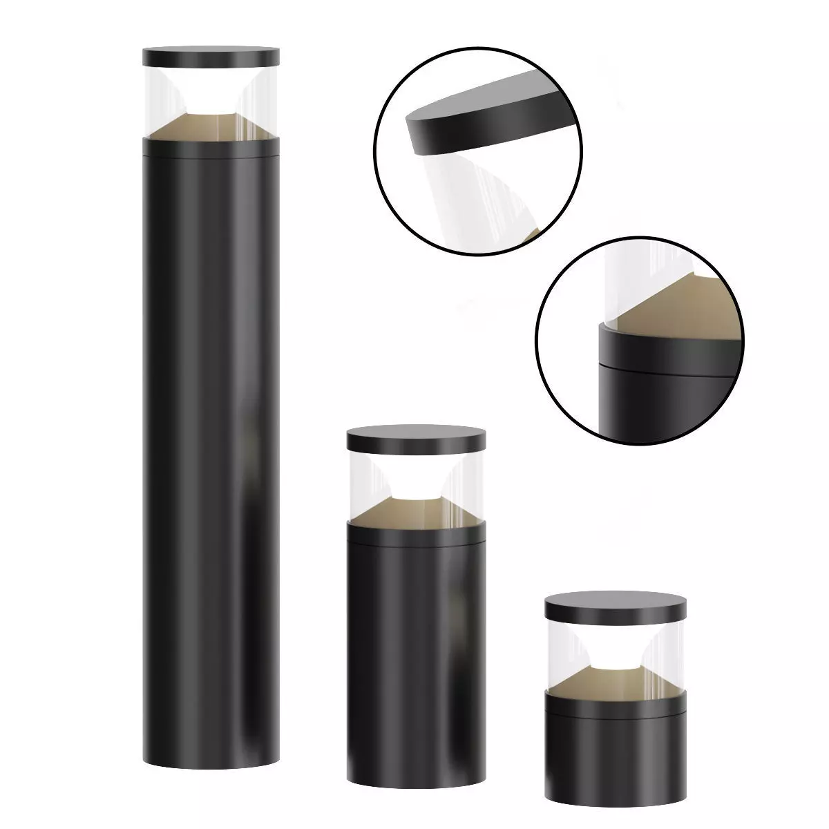 Scale Options: The image shows three different heights of the bollard, suggesting the model comes in multiple scale variations (e.g., small, medium, and large) for varied landscape use.