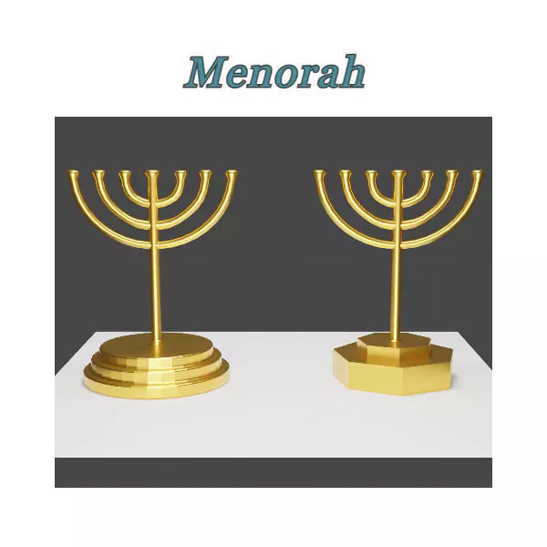 Real world-scale 3D model designs (two designs) of the menorah, another essential piece of furniture in the Tabernacle of Moses which was built by the Israelites in the desert period after God freed them from the Egyptians. Both models are ready to be used in any project such as gaming, cinematics, and 3D printing.