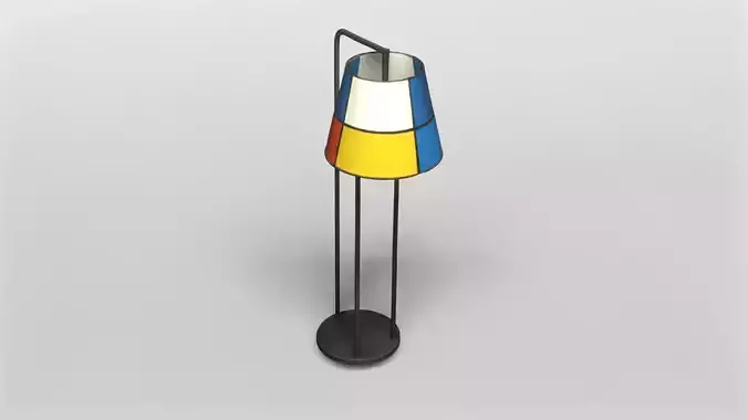 This 3D model features a sleek and modern floor lamp characterized by a minimalist black metal frame and a distinctive lampshade adorned with bold geometric color blocks in blue, red, white, and yellow. The design blends contemporary aesthetics with a touch of artistic flair, making it a perfect addition to modern interior scenes or architectural visualizations.The model is meticulously crafted to capture intricate details such as the smooth finish of the metal stand and the vibrant, high-quality textures applied to the lampshade. These textures enhance the visual appeal and realism of the lamp, ensuring it stands out in any 3D environment.Available for download in the versatile GMB format, the model includes the complete texture set, allowing for easy integration and customization in various 3D applications. Additionally, it is offered in the widely supported FBX format, providing compatibility across numerous platforms and software.Whether used in residential or commercial interior designs, this floor lamp model serves as an excellent asset for designers and artists seeking to enrich their projects with a stylish lighting element that combines functionality with artistic design.