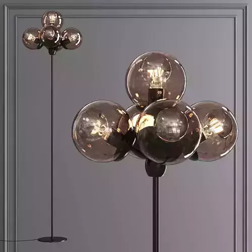 Modo Floor Lamp 5 Globes Black and Smoke Glass 3D model