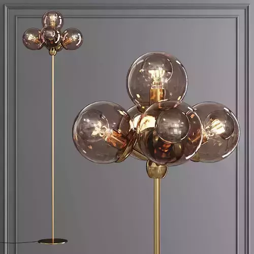 Modo Floor Lamp 5 Globes Brushed Brass and Smoke Glass 3D model